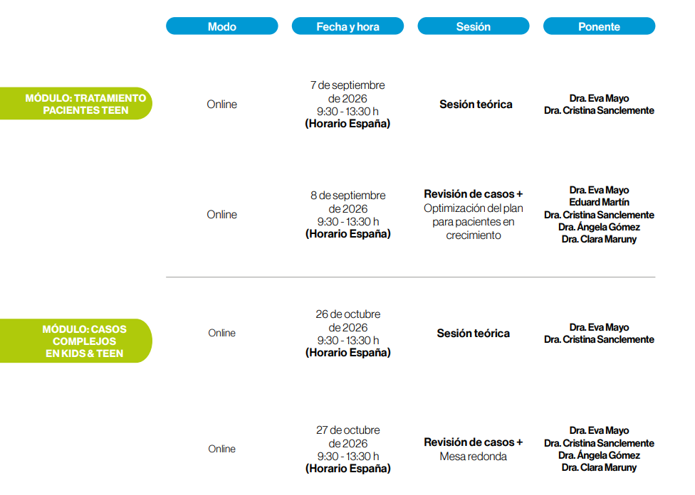 - Formación en protocolos y estrategias específicas para trabajar con Avance Mandibular, Invisalign® First y novedades del sistema Invisalign®.